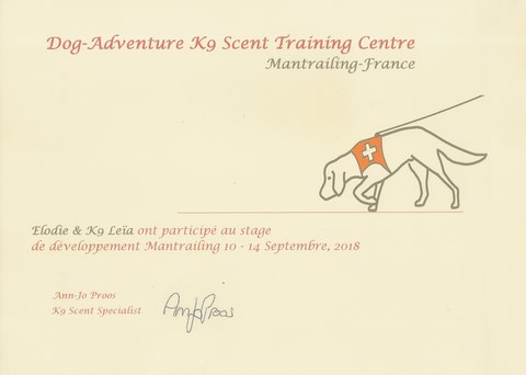 Attestation pour le stage pratique de mantrailing- équipes expérimentées -4 jours