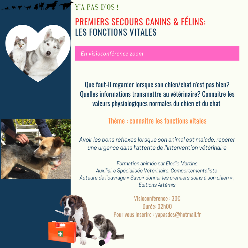- Savoir vérifier les fonctions vitales et pouvoir transmettre les informations essentielles au vétérinaire.