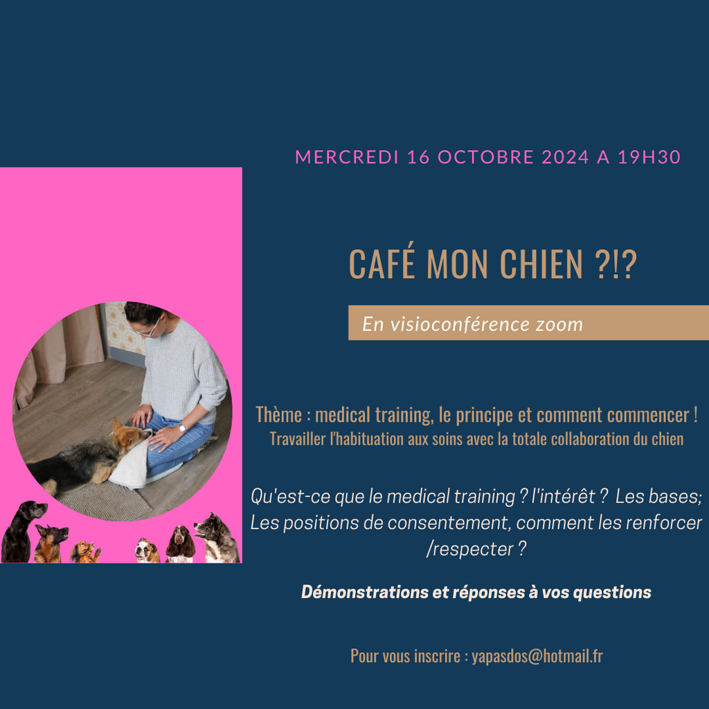 - Mardi 28 janvier 2025 à 19h30 : Découvrez le principe du "Medical Training" et comment commencer.